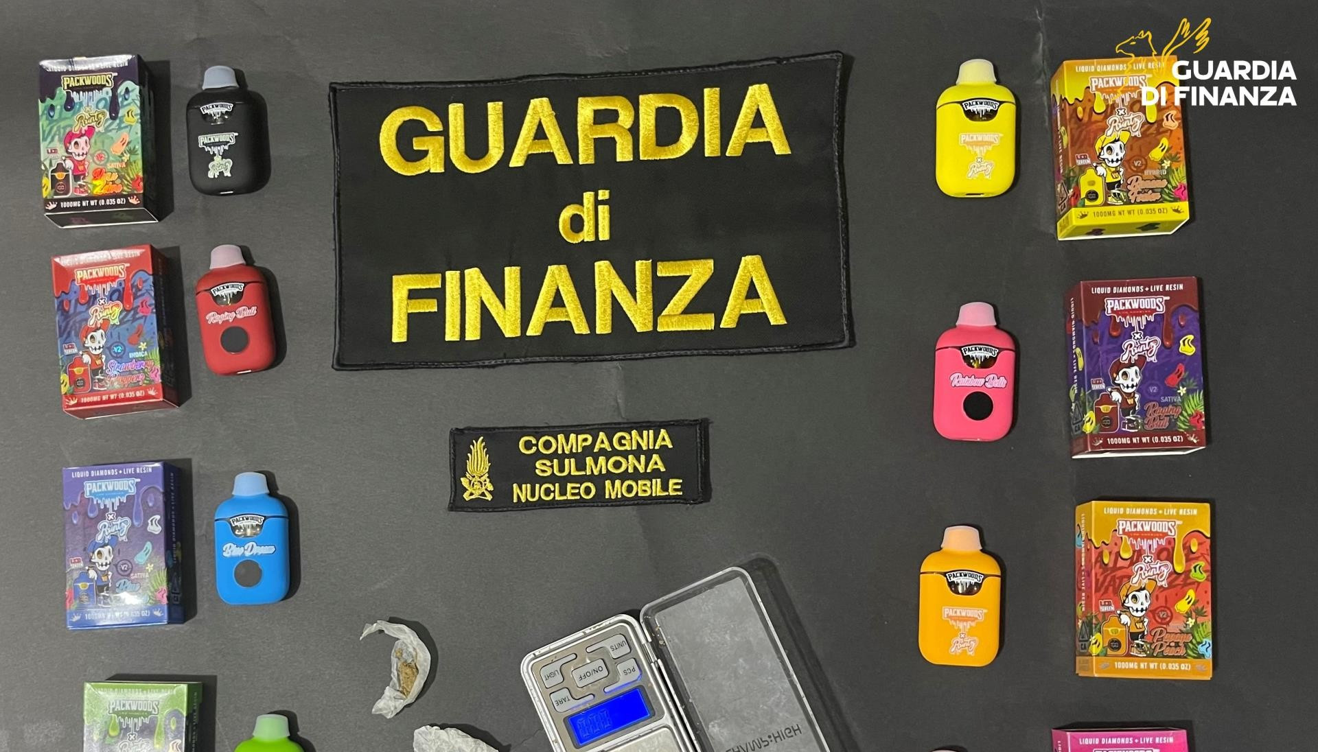 Sulmona. I Finanzieri della Guardia di Finanza di Sulmona, diretti dal Capitano Cecilia Tangredi, attraverso una mirata e costante attività di monitoraggio del territorio, hanno individuato e sottoposto a sequestro, anche a seguito di una perquisizione domiciliare, 10 dispositivi di vaporizzazione elettronici contenenti un liquido ad altissima concentrazione (superiore al 70 %) di THC, principio attivo psicotropo della cannabis.