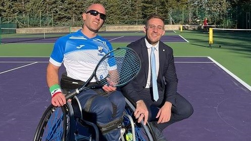 “Solo qualche mese”, aggiunge Simonelli”, fa abbiamo avuto l’occasione di conoscerci prendendo parte ad una dimostrazione da lui tenuta presso l’Avezzano Tennis Team, con il maestro Alfredo Tomassetti, sui nuovi campi Mapei, in costanza della quale ho avuto modo di apprezzarne l’immensa forza di volontà che gli permette di sopperire con grande successo ai limiti fisici”.