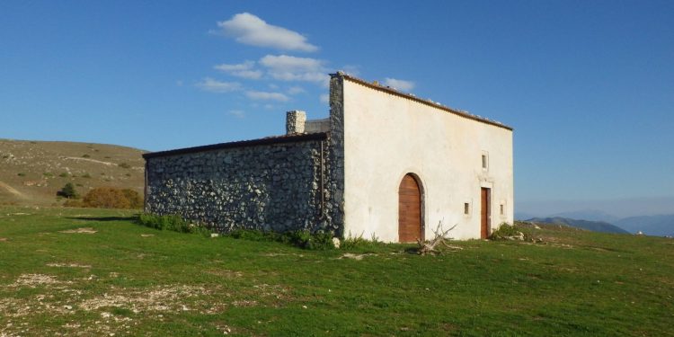Arrivati sul passo del monte, si fa tappa presso il piccolo eremo di Sant’Erasmo. La chiesetta spoglia ed essenziale accoglie i visitatori con la sua atmosfera tranquilla e la vista panoramica mozzafiato su tutte le principali catene montuose dell’Abruzzo e sulle valli circostanti. La spiritualità del luogo si avverte, amplificata dalla storia e dalla tradizione legate al culto di Sant’Erasmo.