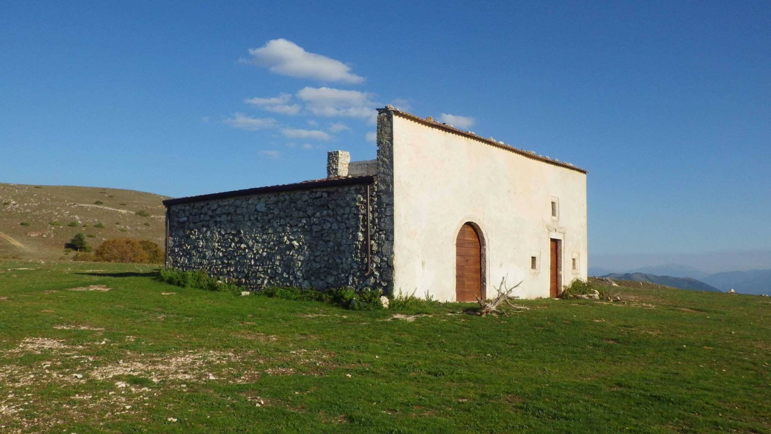 Arrivati sul passo del monte, si fa tappa presso il piccolo eremo di Sant’Erasmo. La chiesetta spoglia ed essenziale accoglie i visitatori con la sua atmosfera tranquilla e la vista panoramica mozzafiato su tutte le principali catene montuose dell’Abruzzo e sulle valli circostanti. La spiritualità del luogo si avverte, amplificata dalla storia e dalla tradizione legate al culto di Sant’Erasmo.