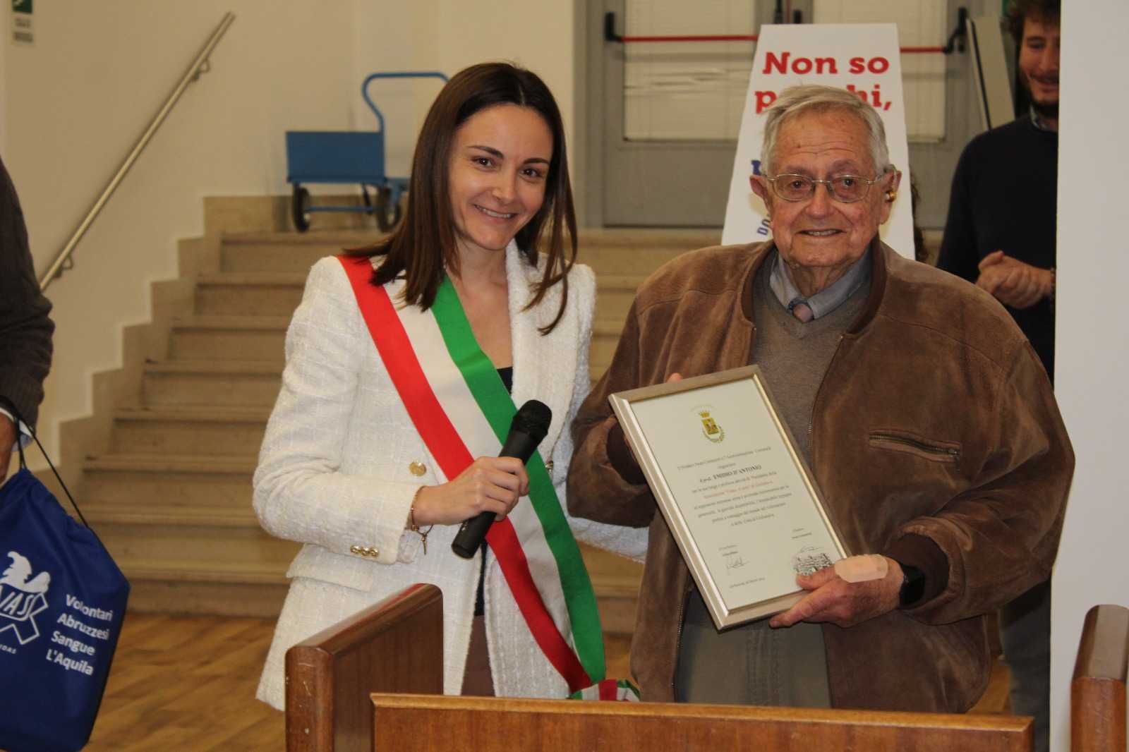 “Un tributo di gratitudine dovuto e che abbiamo consegnato con gioia -commenta Lidia Albani – Il professor D’Antonio ha mostrato e mostra una determinazione e una costanza rare e longeve. Il suo sorriso, il suo garbo, insieme ad un’invidiabile concretezza, rappresentano uno straordinario incentivo a partecipare e a donare. La Fidas, che da sempre svolge una preziosa campagna di promozione e sensibilizzazione, ha premiato anche i volontari più assidui. Del loro esempio, dell’esempio professor D’ Antonio, Giulianova deve davvero fare tesoro”.