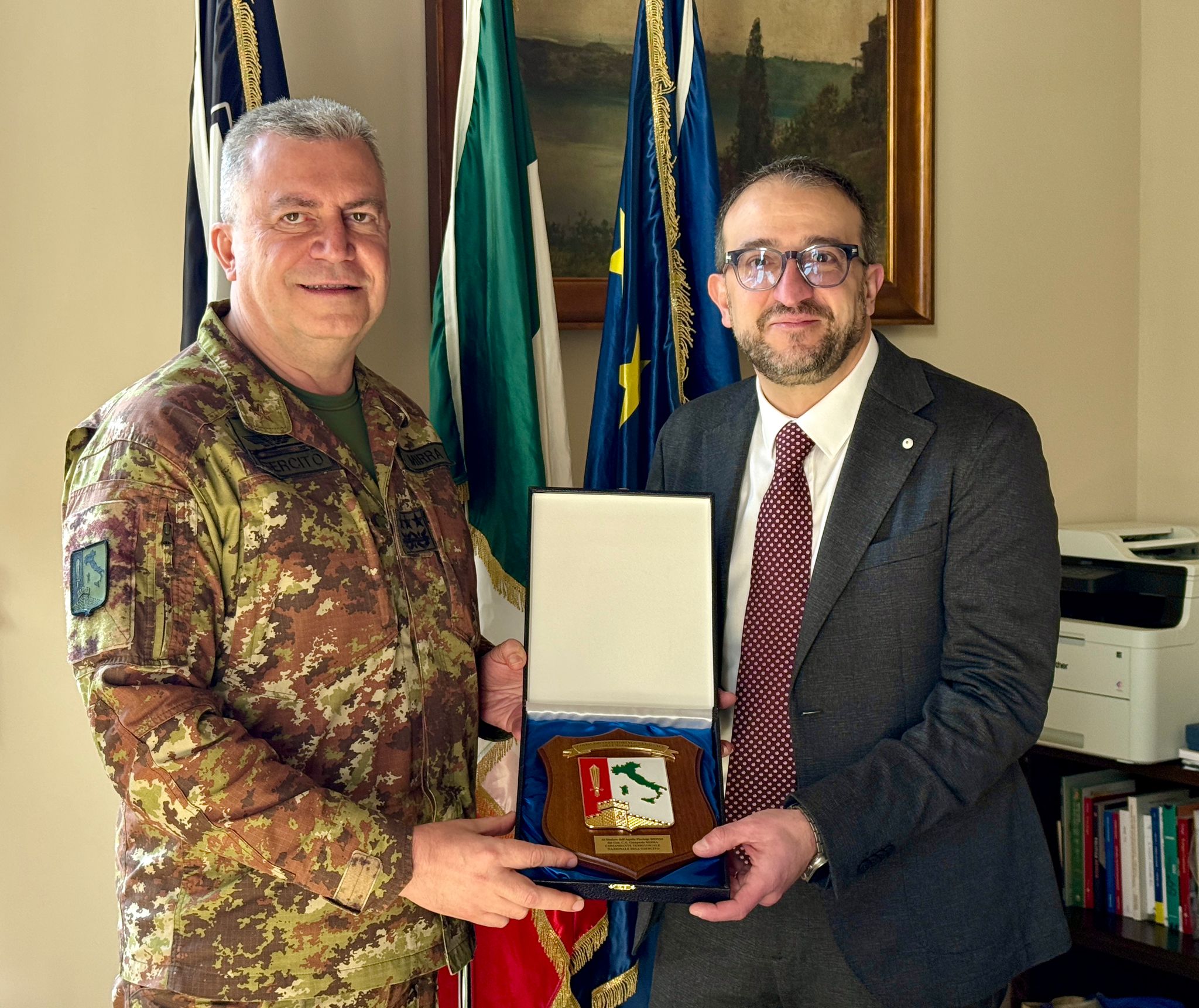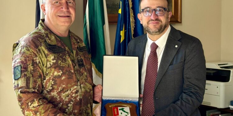 A seguire, il Generale Mirra si è recato presso Palazzo Margherita, sede del Comune, dove ha incontrato il sindaco Pierluigi Biondi, per un confronto sulle principali opportunità del territorio e sulle collaborazioni future. Il Comando Militare Abruzzo – Molise gestisce i rapporti istituzionali con le autorità locali, le attività di presidio, la promozione dei reclutamenti, il sostegno al ricollocamento professionale dei militari congedati, la gestione documentale e tutte le attività legate al benessere delle famiglie dei militari.