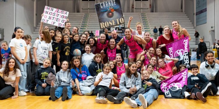 L’ultimo quarto è uno spot per la pallacanestro femminile. Geas prosegue con il break e si riporta ancora una volta a contatto (60-58), ma il cuore di Roseto è immenso, tutte le ragazze danno un contributo fondamentale, con Ustby sugli scudi, il parziale decisivo è servito e le Panthers festeggiano il 71-64 finale. È la prima, storica, vittoria in Serie A1 e la dedica va tutta al Team Manager Giorgio Pomponi. Siamo solo all’inizio di un lungo viaggio.