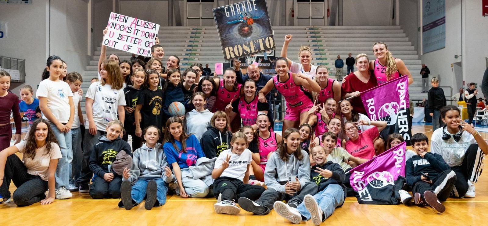 Roseto. La prima vittoria in Serie A1 non si scorda mai, le People Strategy Panthers Roseto battono la corazzata Geas Basket Sesto San Giovanni (71-64) davanti ad un PalaMaggetti commovente, al termine di una partita letteralmente condotta dall’inizio alla fine.