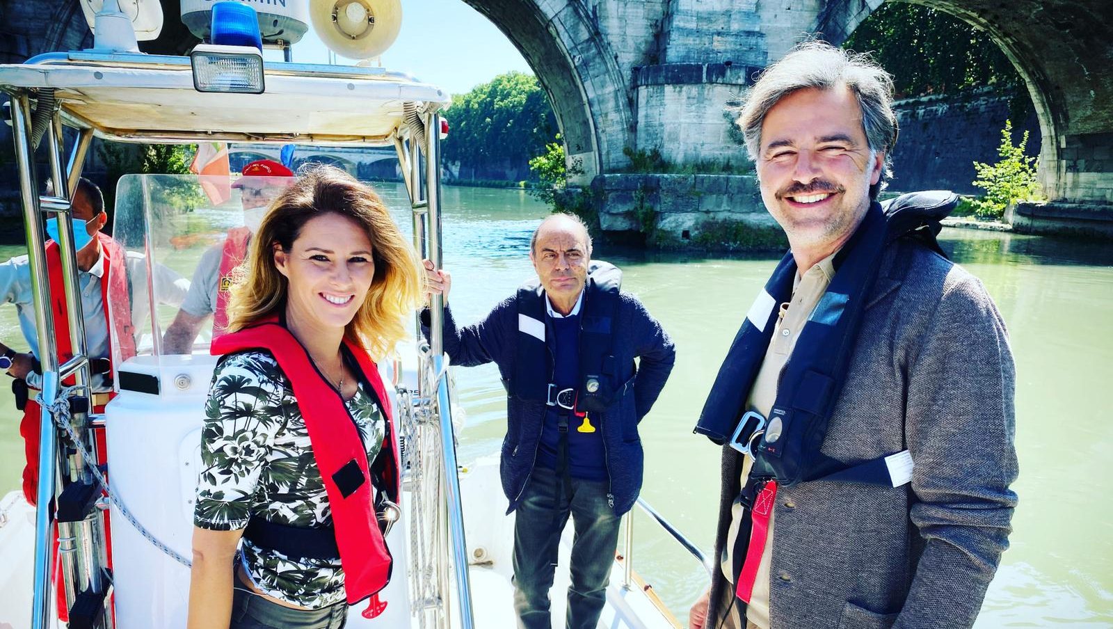 Da un’imbarcazione in navigazione sul tratto del Tevere che dal Foro Italico conduce fino all’isola Tiberina e dallo splendido complesso dell’Abbazia delle Tre Fontane dei Frati Trappisti, Beppe Covertini ed Ingrid Muccitelli ci portano a viaggiare nell’Abruzzo aquilano, nel tratto che da Capestrano porta fino all’Aquila, attraversando la Piana di Navelli, ai piedi di Campo Imperatore, lungo il tracciato dell’antico tratturo che univa proprio L’Aquila a Foggia.