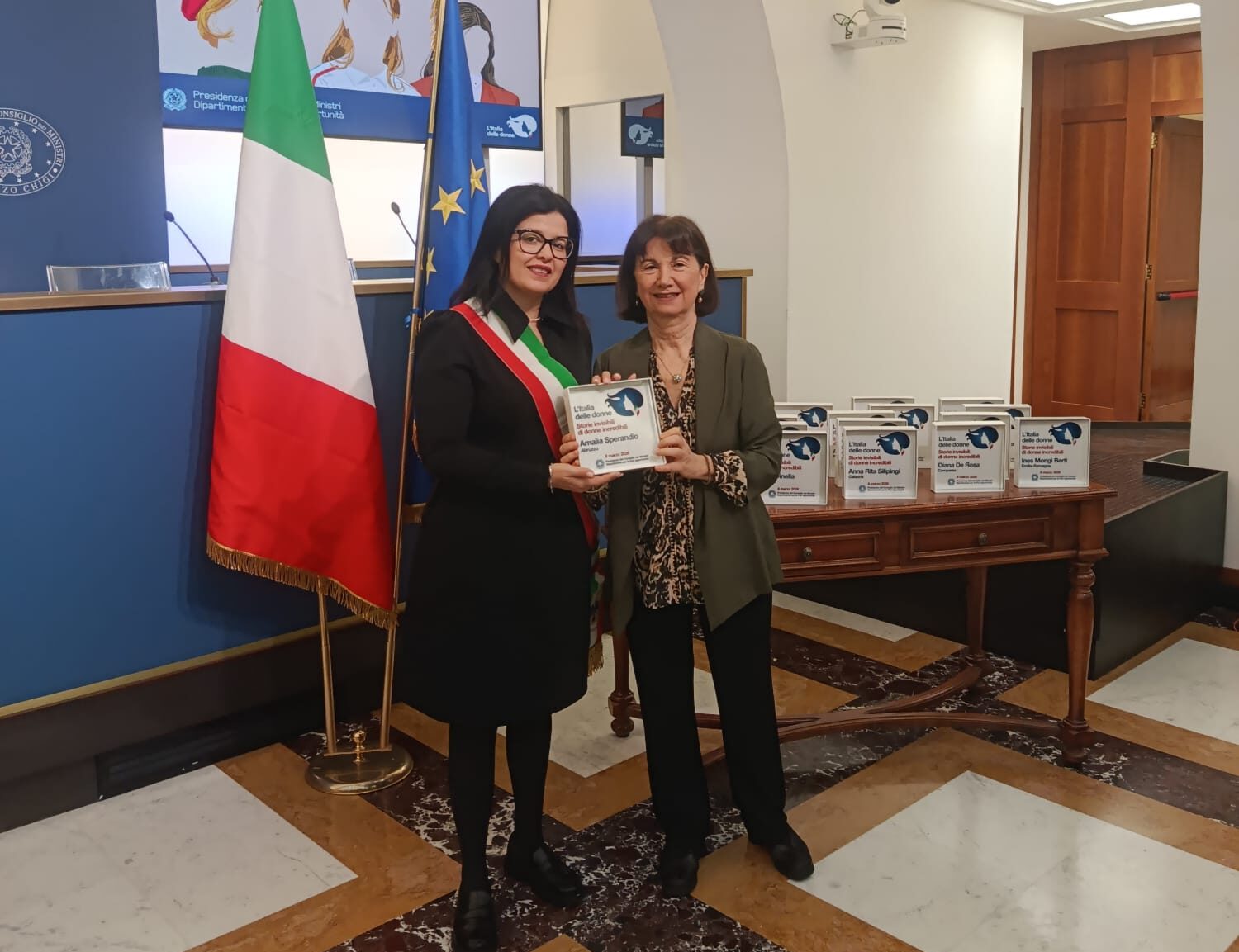 La premiazione si è svolta presso la Presidenza del Consiglio dei Ministri alla presenza della ministra per la Famiglia, la Natalità e le Pari Opportunità, Eugenia Roccella, che ha consegnato il premio all’assessore comunale alle Pari Opportunità, Ersilia Lancia.