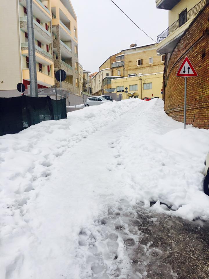 Chieti. L’ondata di maltempo che sta interessando l’Abruzzo continua a creare forti disagi anche in provincia di Chieti. Sulla zona del chietino, già interessata da abbondanti nevicate che hanno richiesto l’intervento dell’Esercito, la pioggia batte incessantemente da questa mattina e ha anche allagato alcune strade e provocato smottamenti. Attualmente Via Trieste Del Grosso, una delle strade principali per accedere dall’immediata periferia al centro di Chieti e via Santa Maria Calvona continuano a essere bloccate dalla neve. L’emergenza più grave resta ancora la mancanza di acqua nelle abitazioni prive anche dell’erogazione di energia elettrica ormai da 4 giorni. Una frana ha interessato un cortile di uno stabile in via Trieste Del Grosso, al civico numero 26, a Chieti. La voragine generata dal crollo ha inghiottito alcune autovetture parcheggiate nel cortile. Sul posto sono intervenuti i vigili del fuoco. Fortunatamente non sono stati registrati danni a persone ma le abitazioni della zona sono state evacuate.