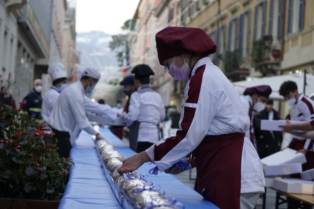 Circa 600 gli studenti degli indirizzi pasticceria, enogastronomia, sala e vendita e accoglienza turistica impegnati nel posizionamento del celebre dolce su 140 tavoli allineati tra Piazza Martiri della Libertà e Corso San Giorgio.