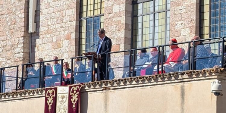 L’Aquila. Oggi, in occasione della festa di San Francesco, il presidente della Regione Abruzzo, Marco Marsilio, ha lanciato un messaggio di pace dalla Loggia del sacro Convento di Assisi: “Tutti insieme abbiamo reso l’Abruzzo protagonista davanti all’Italia e al mondo intero. Che da Assisi e dall’Abruzzo si levi un messaggio forte, luminoso e coraggioso, quello di credere che la pace è possibile.