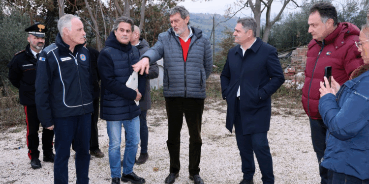 Bucchianico. Dalla località Piane di Bucchianico prende avvio il primo percorso di ricostruzione in Italia basato sulla legge nazionale n. 40 del 2025. Nel corso di un sopralluogo sul sito interessato dal movimento franoso, il Presidente della Regione Abruzzo Marco Marsilio, Commissario straordinario per la ricostruzione, ha illustrato le scelte operative condivise con enti locali e cittadini per superare l’emergenza abitativa.