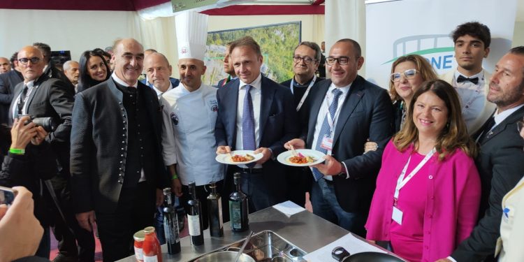 Lo spazio Abruzzo al Merano Wine Festival, ieri visitato anche dal neo ministro dell’Agricoltura Francesco Lollobrigida, continua intanto con il suo fitto programma di show cooking, dopo che ieri al Teatro Puccini la premiazione dei Platinum Award 2022, massimo riconoscimento assegnato dal The WineHunter Helmuth Köcher, ha visto premiati anche gli abruzzesi Fattoria La Valentina con 2019 Bellovedere Montepulciano D’abruzzo Terra dei Vestini Riserva Doc per la categoria Wine e Ursini con Piparolo con Mousse Di Baccalà per la categoria Food.