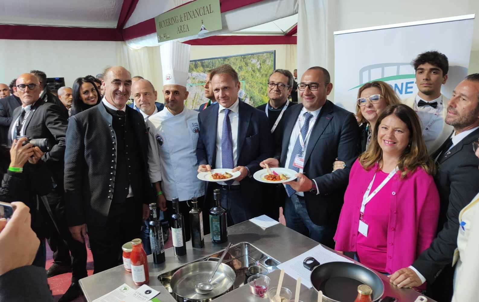 Durante la prestigiosa kermesse enogastronomica, alla quale l’Abruzzo per la prima volta su impulso del vice presidente della Regione con delega all’Agricoltura Emanuele Imprudente, partecipa con un proprio spazio grazie all’inedito sforzo congiunto di Regione, Camere di Commercio di Chieti-Pescara e Gran Sasso d’Italia, Gal (Gruppi di azione locali), Istituti Alberghieri di L’Aquila, Teramo, Pescara e Villa Santa Maria (Chieti), e dell’Unione regionale cuochi abruzzesi, si è svolta una cena di gala, “firmata” dallo chef William Zonfa, nella quale Imprudente e il vice presidente della Provincia autonoma di Bolzano, Giuliano Vettorato, hanno sancito la collaborazione.