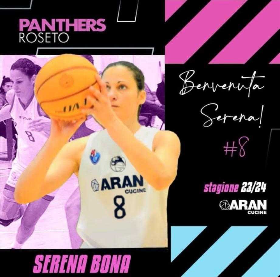 Roseto degli Abruzzi. Le ARAN Cucine Panthers Roseto sono liete di comunicare di aver raggiunto l’accordo con la giocatrice Serena Bona, proveniente dal Basket Girls Ancona.