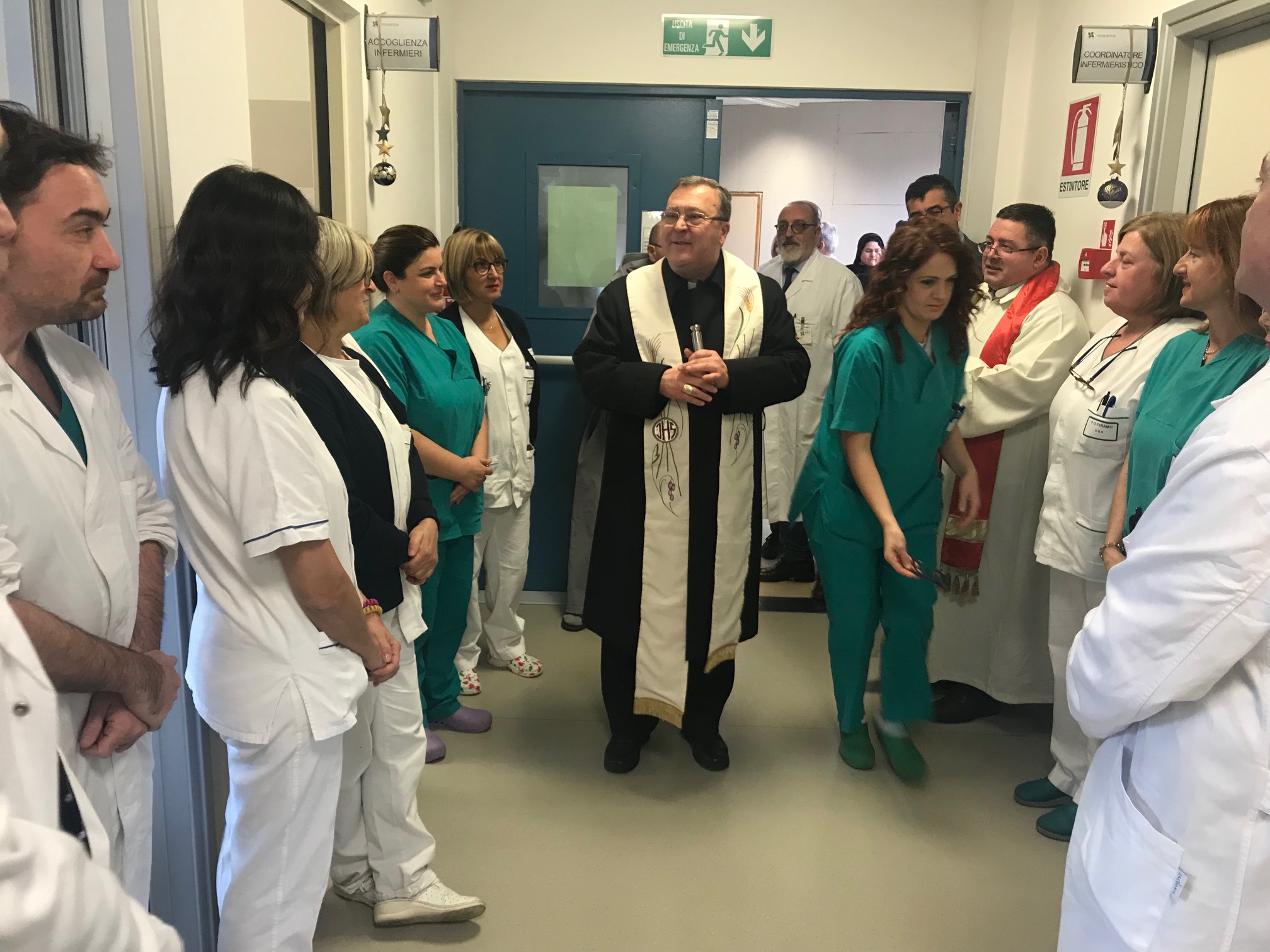 Anche in questo caso, il vescovo non ha lesinato parole di conforto e incoraggiamento sia ai malati che agli operatori, impartendo la benedizione su tutti loro.