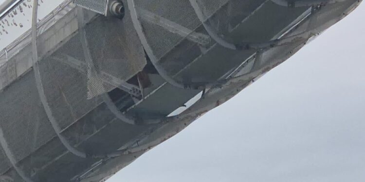 A seguito di una prima ispezione visiva, il danno sembrerebbe interessare la gabbia di acciaio che riveste la parte sottostante della struttura.