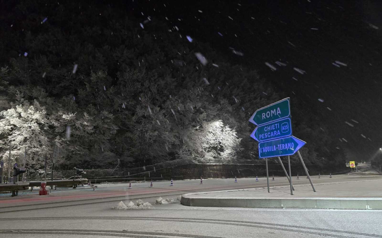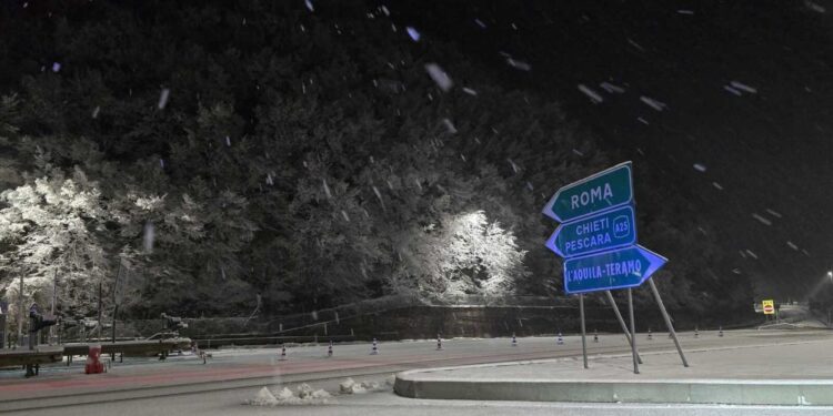 Fiocchi anche lungo l’asse dell’A24, tra Valle del Salto, L’Aquila Est e Assergi, fino al tratto in direzione Tagliacozzo, dove la neve continua a interessare carreggiate e aree limitrofe. Un’evoluzione che conferma il ritorno deciso di condizioni pienamente invernali su gran parte dell’entroterra abruzzese.