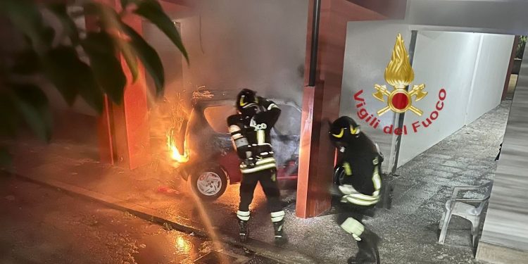 In fiamme una vettura parcheggiata vicino a una palazzina. Terrore tra gli abitanti dello stabile per il rischio concreto che le fiamme interessassero l’intero palazzo.