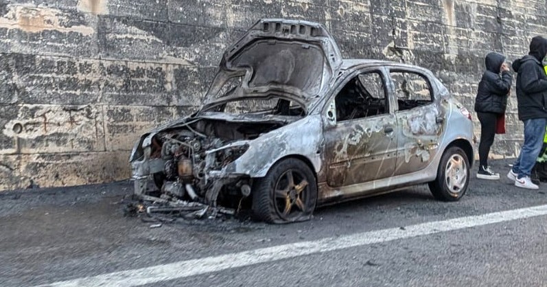 Il guidatore ha immediatamente accostato sulla corsia di emergenza, fermando l’auto appena in tempo. A bordo viaggiava una famiglia, che è riuscita a scendere rapidamente dal veicolo e ad allontanarsi prima che l’incendio si propagasse completamente.