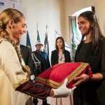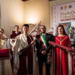Con queste parole, rivolte ai figuranti principali del Corteo della Bolla delle edizioni 2021 e 2022, il sindaco dell’Aquila, Pierluigi Biondi, ha presieduto la cerimonia del passaggio di consegne nella sala Rivera di palazzo Fibbioni, sede comunale. La Dama della Croce della 727/a edizione, Martina Ciccone, ha consegnato all’omologa Dama di quest’anno, Adriana Carolina Pinate, il cuscino su cui sarà adagiata la Croce del Perdono, il gioiello che ogni anno forgia l’artista aquilana Laura Caliendo come omaggio alla Chiesa.