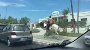 Pescara. In sella ad un cavallo, al galoppo, sulla pista ciclabile della riviera Nord di Pescara, nel centro della città. E’ quanto accaduto stamani nel capoluogo adriatico. I video del curioso episodio sono finiti sui social network e stanno facendo il giro della rete.