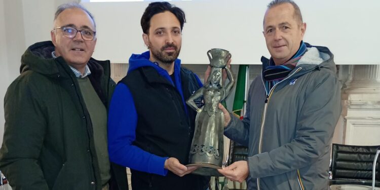 Pescocostanzo. Si è svolta a Pescocostanzo la cerimonia di consegna alla città dell’opera d’arte donna in ferro battuto, di Nicodemo ed Enrico Donatelli, alla presenza del consigliere regionale Antonio Di Marco, presidente dell’Associazione I Borghi più belli d’Italia per Abruzzo e Molise.