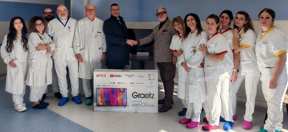 Pneumologia Teramo, la ditta Patella dona 14 televisori per le stanze di degenza