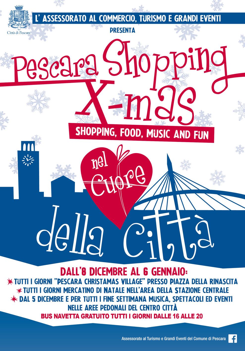 Il calendario è studiato insieme a loro, quest’anno abbiamo investito risorse aggiuntive e ci aspettiamo un ritorno positivo in termini di presenze, perché il mese di dicembre possa essere caratterizzato da una Pescara viva e animata e da un comparto economico più sorridente degli altri anni. Ci sono attività per tutto il mese e anche oltre, si tratta di un interveno importante che esalta il centro commerciale naturale che Pescara si è rivelato. Cominciamo subito, intensificheremo il ritmo durante la settimana dell’8 dicembre, in cui Pescara risplenderà con le speciali luminarie di Luci d’Artista, grazie all’intesa con Camera di Commercio e associazioni di categoria. In tutto il resto della città, con particolare attenzione alle zone periferiche, porteremo le luminarie del Comune. In questi giorni si procederà al montaggio del Mercatino di natale dell’area di risulta, la gestione è stata affidata ieri, abbiamo inserito criteri più rigidi nel bando perché dentro ci fossero eventi dedicati e una caratterizzazione più natalizia, avremo infatti le casette anche lungo il percorso dell’area di risulta. A Piazza della Rinascita avremo l’Ice village, che per forma e grandezza non sarà quella a cui siamo abituati, lo inaugureremo l’8 dicembre: sarà una grande pista realizzata per la città di Pescara a forma di 8 perché regali un percorso inedito a chi la sceglie per pattinare. Sempre a piazza della Rinascita ci sarà anche un grande e speciale albero di Natale, la casa di Babbo Natale e nell’urban Box allestiremo il Laboratorio degli Elfi, dove i bambini potranno trascorrere del tempo consentendo alle famiglie di fare shopping mentre verranno coinvolti in lavoretti e attività tipicamente natalizie. Oggi pomeriggio parte anche il bus navetta gratuito che estenderemo a tutto il periodo dei saldi. Altra iniziativa è Suoni di Natale, una filodiffusione di musiche natalizie in tutte le aree pedonali: da via Firenze a via Battisti, via Mazzini, via Piave, Piazza Salotto e piazza Muzii. Tutti i fine settimana avremo delle postazioni di animazione in centro per i bambini, con cori gospel itineranti e dal 15 al 18 dicembre uno street food di qualità sarà presente nella zona sud della città, nell’area ex Cofa, ai piedi della ruota panoramica. A piazza Garibaldi, per restare a sud, arriverà un albero alto sette metri e animazione. Altra area eventi è quella del mercato di piazza Muzii e sarà un’area che avrà un’animazione dedicata in occasione delle festività natalizie. Avremo anche una collaborazione che si rinnova con il Conservatorio, con gli straordinari talenti del Vocal Ensemble che si esibiranno in concerto sempre a piazza della Rinascita. Dal 30 al 6 gennaio il palco di piazza Salotto sarà animato tutti i giorni. Per Capodanno, invece, la formula è quella consolidata negli anni scorsi, un grande concerto capace di invitare migliaia di persone a festeggiare in piazza. In pentola bolle anche una nuova edizione del Videomapping che dal 23 dicembre al primo gennaio proporrà una sorte di festival di artisti, regalandoci, come accaduto anche lo scorso anno, i fuochi virtuali, gli unici che autorizzeremo in città per il rispetto degli animali, confermando la linea da noi gia sposata e all’unisono con le maggiori realtà italiane ed europee”.