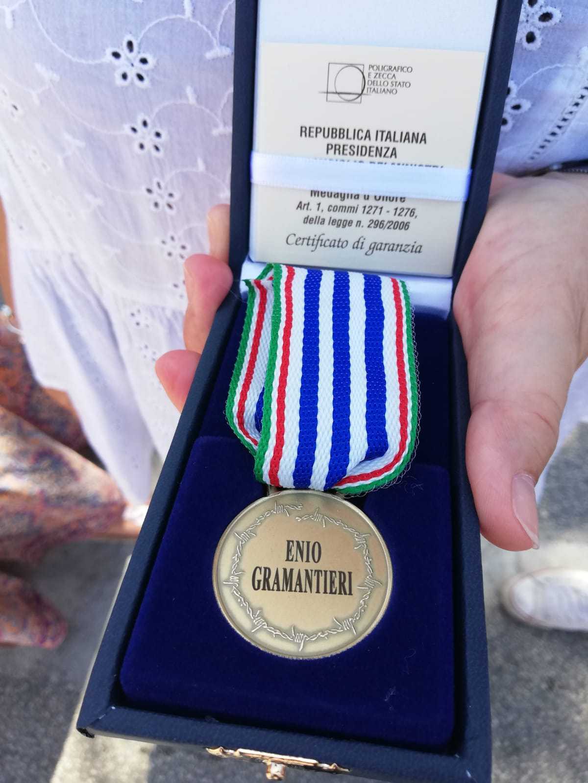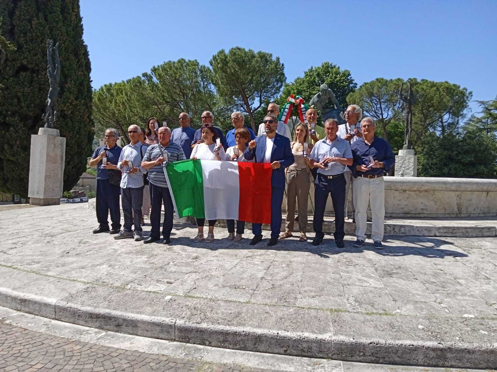Teramo. La storia siamo noi, in un unico e grande viaggio. “In occasione della Festa della Repubblica”, scrive il comunicato di Goffredo Palmerini,”lo scorso 2 giugno, presso il Monumento ai Caduti di Viale Mazzini, sono state consegnate 22 medaglie d’onore dal Prefetto Massimo Zanni conferire con Decreto del Presidente della Repubblica, Sergio Mattarella, ai cittadini deportati ed internati nei lager nazisti e destinati al lavoro coatto per l’economia di guerra, quale risarcimento soprattutto morale che la Repubblica Italiana riconosce per il sacrificio patito dai propri cittadini. Questi i destinatari delle medaglie, consegnate ai familiari: Giuseppe Alleva, fante, nativo di Campli. Cacchiò Antonio, aviere, nativo di Colonnella; alla sua memoria è stato dato alle stampe un libro a cura di Danilo Massi dal titolo “Stalag II-B 30323”. Ciarrocchi Rinaldo, operaio militarizzato, nativo di Tortoreto ma residente all’epoca dei fatti a Giulianova; muore a Bastia in Corsica il 12 settembre 1943, dopo essere stato catturato dai tedeschi ed il suo corpo risulta disperso sull’isola. Cioschi Quintino, autiere, nativo di Teramo; il figlio e il nipote sono arrivati a Teramo da San Salvo per ricordare il loro congiunto (era prevista la consegna a Chieti)”.