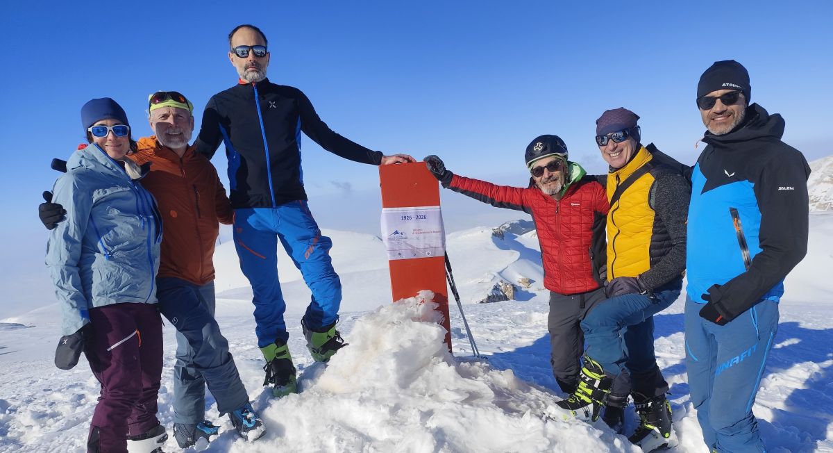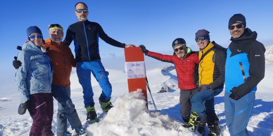 Nella giornata di sabato 28 febbraio 2026 un gruppo di istruttrici e istruttori di scialpinismo della Scuola “Paolo Consiglio” della Sezione di Roma del Club Alpino Italiano ha salito Monte Amaro sulla Maiella in Abruzzo per festeggiare in vetta il centenario dell’impresa compiuta dai consoci Enriques, Ghibaudo, Rossi e Tartara che il 28 febbraio 1926 raggiunsero per la prima volta in sci la seconda vetta più alta dell’Appennino Centrale con i suoi 2.793 metri di quota.