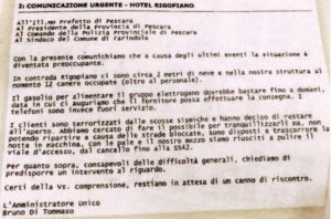 Per me è una mail ininfluente: non ci siamo mai fermati. Quanto alla turbina dell’Anas di Penne, quella che poi ha materialmente liberato la strada di Rigopiano nella notte, nel pomeriggio non era ferma ma stava ripulendo la ss 81 che è di competenza dell’Anas, così come la seconda turbina Anas in quelle ore era a Villa Celiera per salvare anziani intossicati dal monossido di carbonio”, chiude il presidente della provincia.