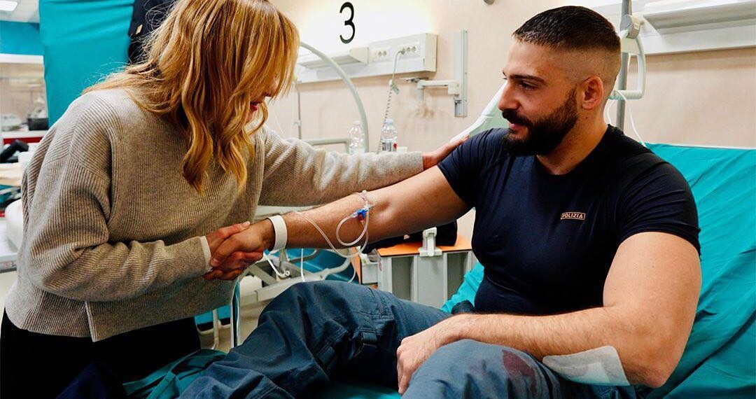 Pescara. Giorgia Meloni in ospedale dai poliziotti feriti durante gli scontri a Torino. Il presidente del Consiglio ha visitato questa mattina gli agenti rimasti feriti e ricoverati all’ospedale Le Molinette di Torino.