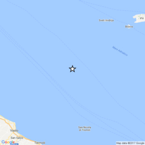 L’epicentro del sisma è stato localizzato dall’INGV ad una profondità di 9 km, seguito alle 13:46 una replica di 2.0. La scossa è stata avvertita in alcune zone della costa adriatica tra le provincie di Chieti e Pescara.