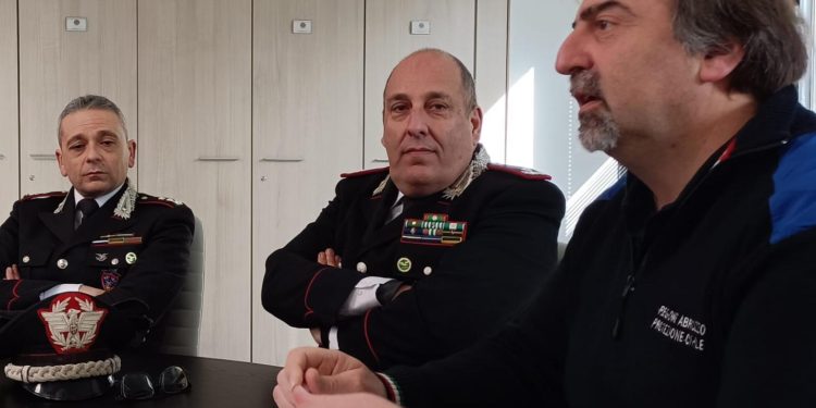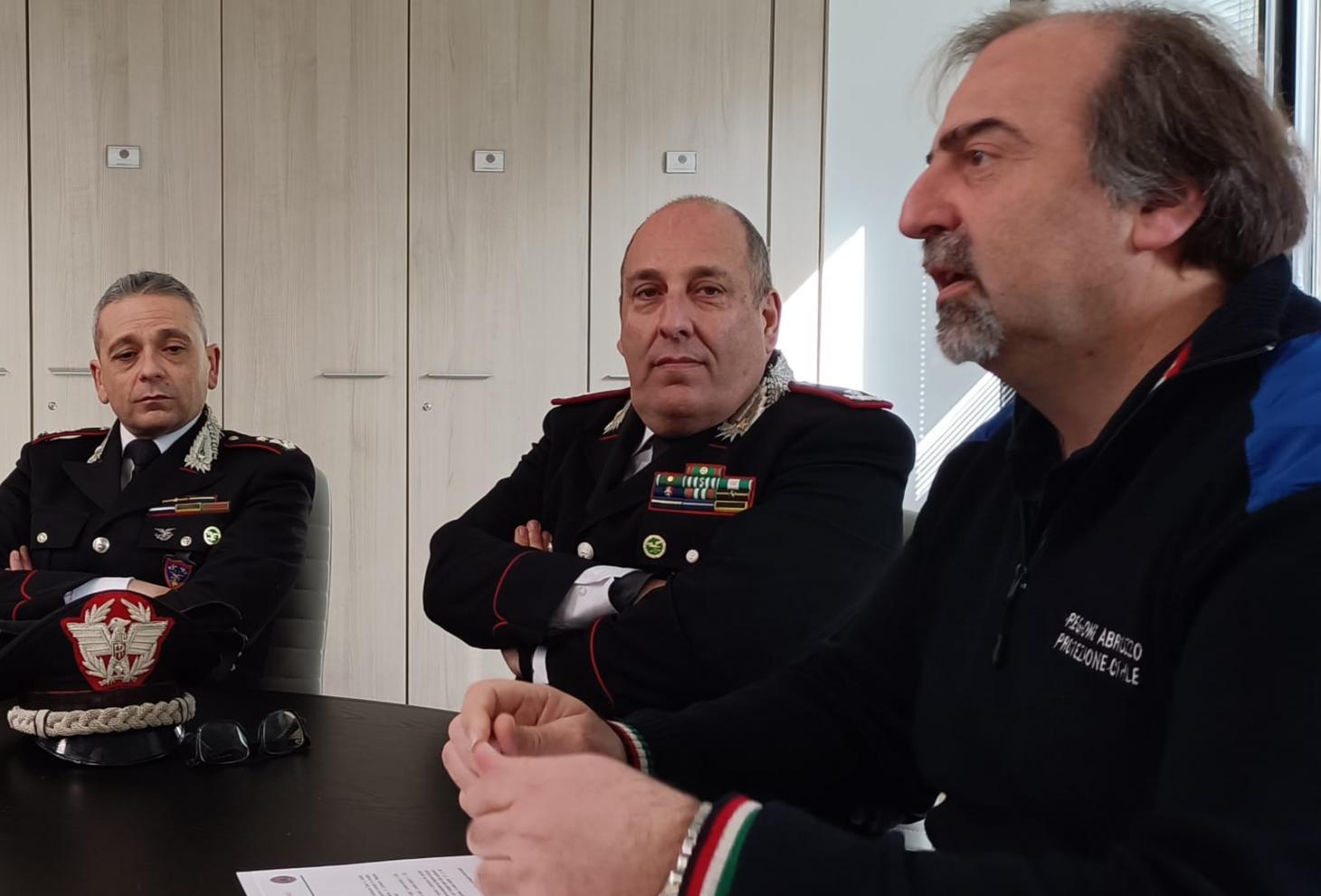 Nella foto da sn: T. Col. Donatello Cirillo, Comandante provinciale AQ Carabinieri Forestale; Gen. B. Giampiero Costantini, Comandante Regione Carabinieri Forestale “Abruzzo e Molise”; dott. Mauro Casinghini, Direttore Agenzia Regionale di Protezione Civile Abruzzo