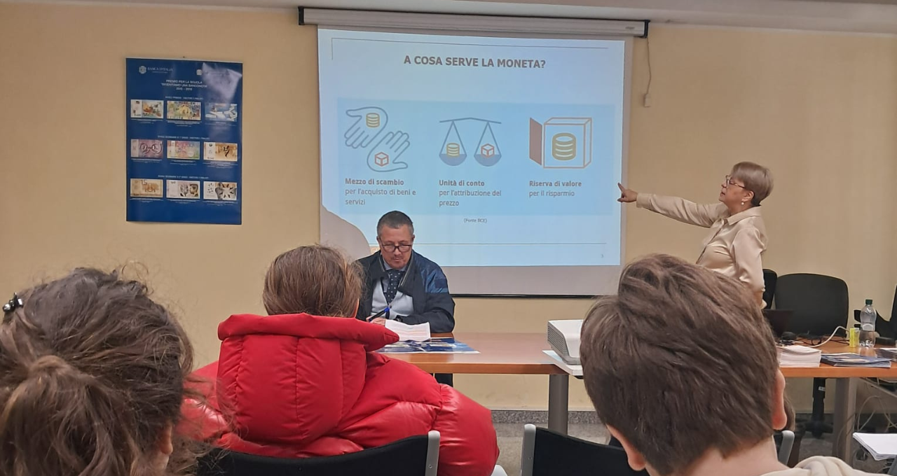 Ad accogliere il gruppo è stata la direttrice della filiale, la dottoressa Violetta De Luca, che ha aperto le porte dell’istituto permettendo ai ragazzi di visitare i locali della banca. L’atmosfera, descritta dai presenti come serena e stimolante, ha favorito un dialogo aperto tra l’istituzione e la scuola. Il cuore della giornata è stata la lezione tecnica tenuta dai funzionari della Banca, il Dott. Pierluigi Di Nicola e la Dott.ssa Katia Masci.