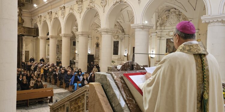 Il Pastore della Diocesi ha comunicato ufficialmente lo slogan che accompagnerà l’intero cammino: “PRENDETE E MANGIATENE TUTTI” (cfr. Mt 26, 26). Per l’occasione, il Vescovo ha consegnato alla comunità un’omonima Lettera Pastorale, un documento programmatico volto a tracciare le linee guida spirituali e teologiche per vivere questo evento non come una parentesi, ma come un autentico motore di conversione.