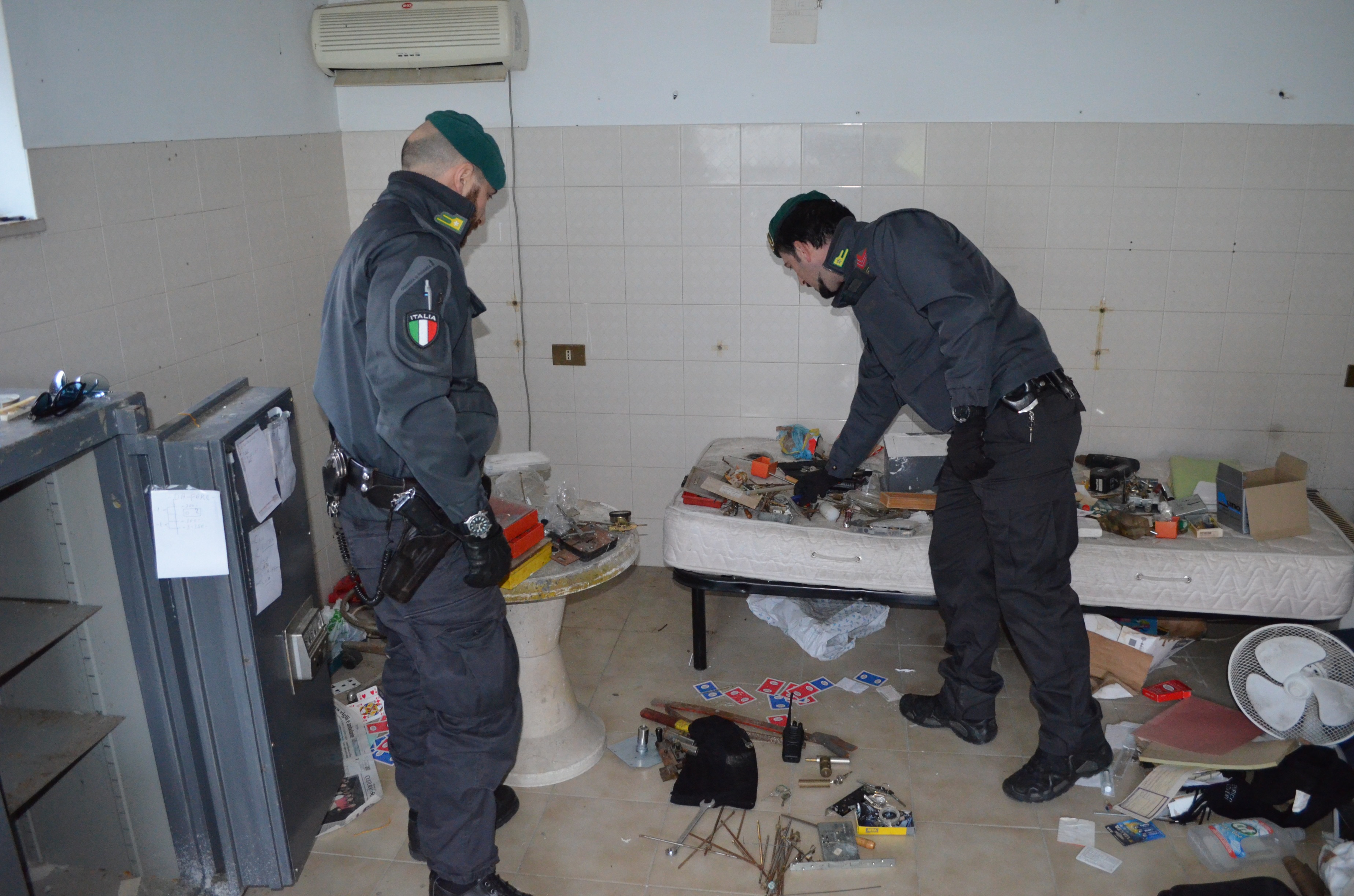 strumentazione elettronica per ascolto movimenti serrature, chiavi artigianali, lime, grimaldelli, mazze e una vasta gamma di attrezzi da scasso. Nello stesso locale era stata allestita una vera e propria “palestra dello scassinatore”, vista la presenza di diverse tipologie di casseforti, aperte e smontate per lo studio, trapani e tornio con dispositivo di programmazione e controllo numerico. Gli arrestati sono stati messi a disposizione dell’Autorità Giudiziaria in attesa del processo per direttissima.