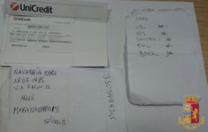 Dalla successiva perquisizione effettuata presso la stanza di albergo, dove la stessa alloggiava in questo centro, sono state trovate e sequestrate una ricevuta di apertura di un conto corrente bancario, acceso lo stesso giorno presso un altro istituto di credito di questa città ed intestato ad una donna di Udine; una carta d’identità ed un codice fiscale, entrambi falsi, intestati ad un uomo di Padova e residente a L’Aquila ed un elenco di banche ubicate in questo capoluogo.