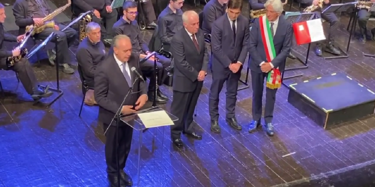 Pescara.  Giovanni Legnini, commissario straordinario per la ricostruzione post sisma del Centro Italia, è stato insignito dell’onorificenza di Grande ufficiale della Repubblica. Stamani la consegna del titolo al Teatro Lauro Rossi di Macerata, alla presenza, tra gli altri, del presidente della Regione Marche, Francesco Acquaroli, in occasione della Giornata dell’Unità Nazionale e delle Forze armate.
