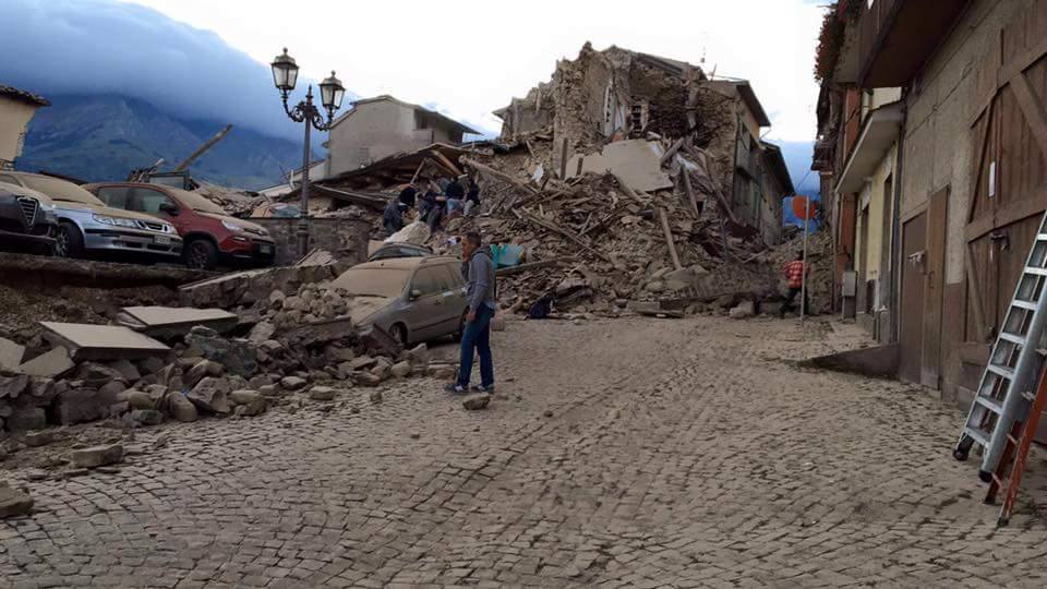 L’Aquila. Il forte terremoto verificatosi nella notte alle 3.36 di magnitudo 6, è stato forte quasi quanto quello, di magnitudo 6.2, che il 6 prile 2009 distrusse L’Aquila. Degli altri recenti ‘grandi’ terremoti in Italia, quello di Messina del 1908 di magnitudo 7.2, quello del 1976 in Friuli è stato di magnitudo 6.2, quello dell’Irpinia (1980) di magnitudo 6.8, quello di Umbria e Marche (1997) di magnitudo 5.6, quello della pianura padana modenese (2012) di magnitudo 5.9. L’epicentro è stato localizzato su monti reatini vicino ad Accumoli a soli 4 chilometri di profondità. Alle 4.42 e alle 4.43 altre due forti scosse in provincia di Perugia, di magnitudo 5.1 e 5.4. In precedenza un’altra scossa di magnitudo 4,4 era stata registrata alle 3.56 a Rieti. L’ultima scossa registrata finora alle 4.55 sempre nel territorio di Rieti, di magnitudo 3.5. Crolli sono segnalati ad Arquata del Tronto (Marche) dove sono state accertati due morti. La strada statale 685 “delle tre Valli” è chiusa tra Borgo Cerreto e Serravalle e, più avanti, tra Norcia e Arquata del Tronto (Ascoli Piceno). Il tratto compreso fra i due blocchi stradali è percorribile soltanto dai mezzi di soccorso e dai residenti. Secondo quanto riferito, le scosse hanno provocato lesioni ad una galleria paramassi, nel versante umbro. Si segnalano inoltre alcune cadute massi. I tecnici Anas sono sul posto per le verifiche necessarie. Tre persone sono morte nel crollo parziale di una casa ad Amatrice. Lo ha detto il sacerdote Fabio Gammarota, che collabora ai soccorsi. I tre si aggiungono ad altri due morti estratti all’alba in una vicina zona del paese. I soccorritori hanno salvato un uomo tra le macerie di una casa completamente distrutta a Viale Frterremoro crolli Amatriceancesco Grifoni, in pieno centro storico di Amatrice. Nello stesso fabbricato distrutto ci sarebbero altre sei persone che si sta tentando di recuperare, ma non si sa se sono vive o meno. Nel resto del centro storico si continuano a tirare fuori feriti dalle macerie mentre amici e parenti aiutano a mani nude i soccorritori a scavare. Sono arrivati ad Amatrice rinforzi per i soccorritori direttamente dalla Nbc Interforze dell’Esercito da Rieti. I militari si sono subito diretti al convitto delle suore dove al momento risultano disperse tre monache e quattro anziani ospiti. All’arrivo alle porte di Amatrice, provenendo dall’Aquila sulla strada 260 Picente, il Ponte chiamato ‘A tre occhi’ sopra il torrente Castellano è pericolante, si è affossato dopo il crollo di un muro sottostante. Si passa in questo punto solo a piedi o in moto. Vittime sono segnalate anche ad Accumoli “Ci saranno almeno sei vittime. Ci sono anche due bambini piccoli” ha dichiarato il sindaco Stefano Petrucci. “Una persona è stata estratta morta dalle macerie questa notte. Poi c’è una famiglia di quattro persone sotto una casa crollata, e qui purtroppo ci sono due bambini piccoli. Inoltre c’è un altro disperso. Mi auguro che i fatti mi smentiscano”. I soccorritori stanno incontrando diverse difficoltà per raggiungere Accumuli, uno dei comuni in provincia di Rieti più colpiti. Diverse strade sono infatti interessate dai crolli e questo non consente ai mezzi di soccorso di raggiungere il paese. Problemi anche per gli elicotteri, che non sono al momento riusciti ad atterrare. Un altro elicottero è invece atterrato ad Amatrice, un altro dei comuni colpiti, e sta trasportando i feriti all’ospedale di Rieti. Al km 136 della statale 4, a circa 4 km dal Comune di Accumoli, un viadotto si è mosso, con un dislivello di circa 15 centimetri. Il traffico alle auto è comunque aperto in entrambi i sensi; sul posto ci sono volontari della Protezione Civile che invitano i veicoli a rallentare. Problema simile su un altro viadotto, il “Tronto secondo”, due chilometri più avanti. Il sisma ha raso al suolo la frazione di Pescara del Tronto (Ascoli Piceno) e si teme che fra le macerie possano esserci vittime.Due i bambini estratto vivi dalle macerie di Pescara del Tronto, frazione di Arquata del Tronto, si tratta di due fratellini di 4 e 7 anni. La nonna, dove erano ospiti, li ha infilati insieme a lei sotto al letto. La donna risponde da sotto le macerie. Tutta la frazione risulta inaccessibile dalla statale con entrambe le vie d’accesso bloccate. Dall’alto le immagini sono apocalittiche “Un unico blocco di macerie sulla strada, si scava”. Provenendo dalla Ss4 “Siamo costretti a lasciare l’ auto e a proseguire a piedi” ­ dice la reporter dell’ANSA ­” la gente piange mentre cammina e si avvia verso il paese”. Sul posto sono al lavoro i Vigili del fuoco, il 118 e la Protezione civile, mentre i volontari portano acqua e coperte. Ad Amatrice “I vigili del fuoco si stanno arrampicando a piedi sulle macerie per cercare eventuali dispersi, e anche un bobcat è in azione per cominciare a liberare la strada dalle macerie. Molti uomini stanno scavando a mano con le pale”. Semidistrutta la Chiesa di Sant’Agostino, la facciata è parzialmente crollata, anche il rosone; il campanile presenta grossi crolli ed è tuttora a rischio di collasso. Grossi blocchi di pietra bianca ingombrano la strada. I feriti vengono portati via dal centro anche con mezzi improvvisati come il cuscino di un divano usato come barella. “È uno scenario apocalittico quello che ci si trova davanti addentrandosi nel centro storico di Amatrice. L’intera fila di abitazioni lungo quello che era il corso è completamente collassata e le macerie delle facciate crollate occupano tutta la sede stradale”.