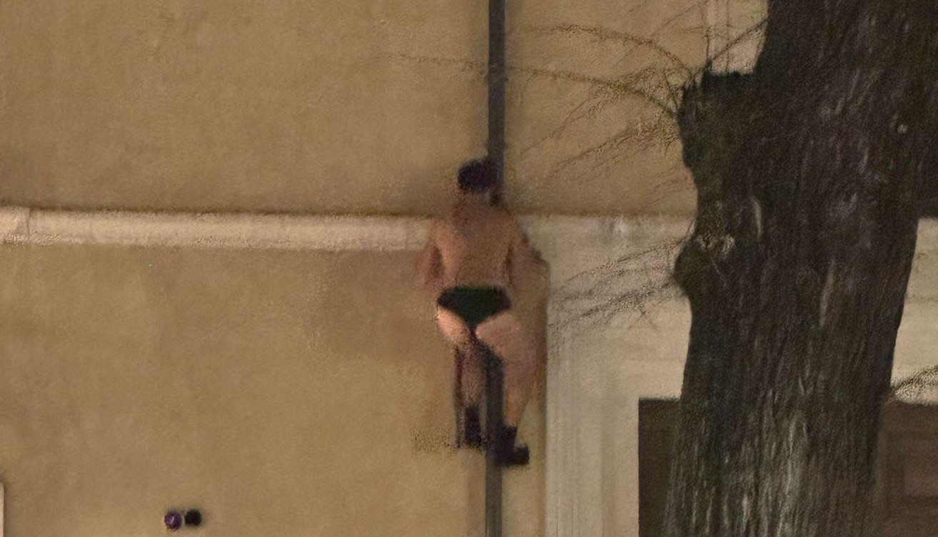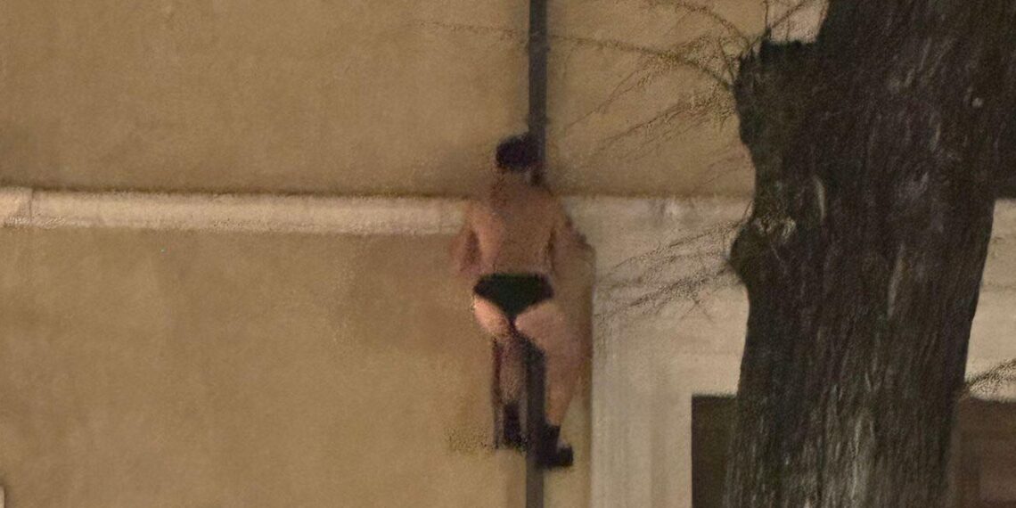 Uomo in mutande scala la grondaia di un palazzo in centro: indignazione sui social