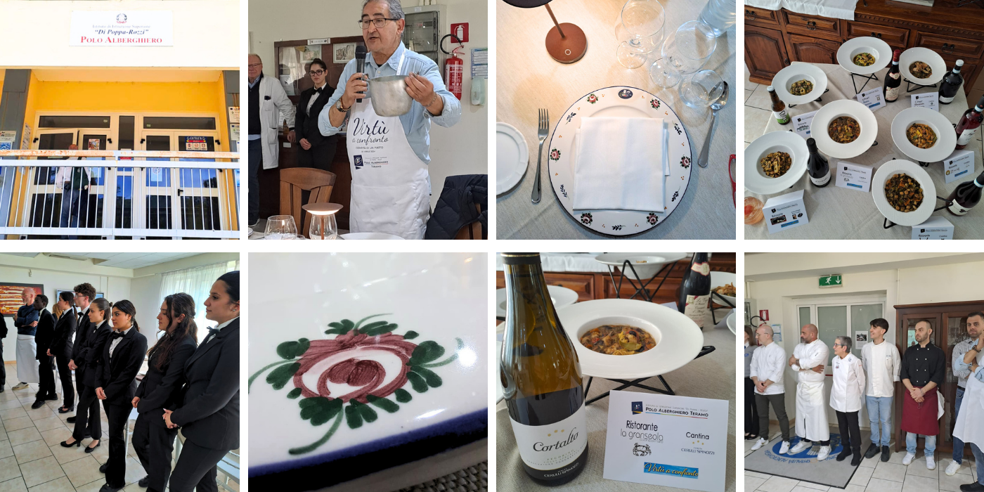 Su questa premessa l’I.I.S. Di Poppa-Rozzi di Teramo ha costruito la prima kermesse interamente dedicata al piatto: “Virtù a confronto. Identità di un piatto, le Virtù teramane a confronto. Tradizione/innovazione… un unico grande sapore!”. Lo scorso 20 aprile la sala ristorante dell’istituto di Via F. Barnabei si è trasformata in un percorso a sette voci, con altrettanti abbinamenti. A condurre i lavori, in casa con la Dirigente Scolastica Prof.ssa Caterina Provvisiero, l’amico e collega Giancarlo Pierannunzi, penna gustosa di “Virtù Quotidiane” e profondo conoscitore della ristorazione teramana, capace di tenere insieme con misura il filo di una giornata che è stata insieme cronaca, didattica e festa di comunità.