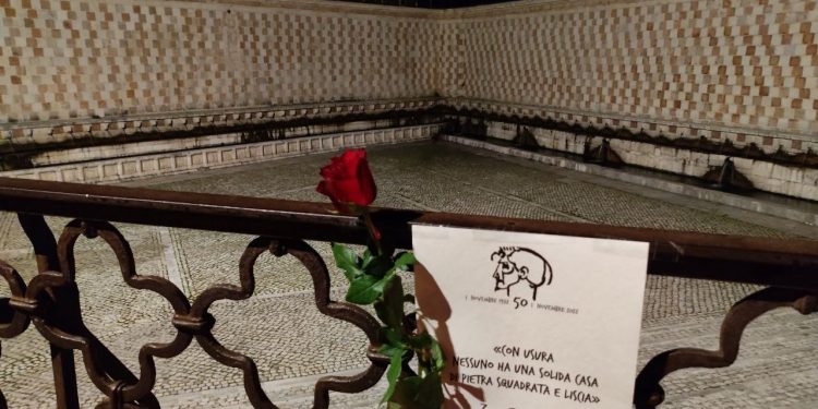 “Ezra Pound – si legge nella nota della tartaruga frecciata – è stato una delle più grandi figure del secolo scorso e ha pagato senza alcuno sconto la sua adesione a idee e valori non più accettabili da un Occidente asservito e abbruttito: anche gli odierni tentativi di “defascistizzare” il poeta sono la dimostrazione dell’incapacità dei più di comprenderne la vita e l’opera. Per questo abbiamo deciso di commemorarlo, affiggendo nei luoghi più significativi della città alcuni testi tratti dai suoi lavori, accompagnati da piccoli omaggi floreali.”