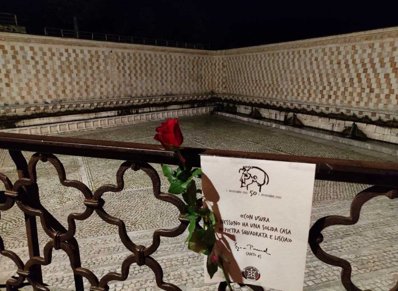 “Ezra Pound – si legge nella nota della tartaruga frecciata – è stato una delle più grandi figure del secolo scorso e ha pagato senza alcuno sconto la sua adesione a idee e valori non più accettabili da un Occidente asservito e abbruttito: anche gli odierni tentativi di “defascistizzare” il poeta sono la dimostrazione dell’incapacità dei più di comprenderne la vita e l’opera. Per questo abbiamo deciso di commemorarlo, affiggendo nei luoghi più significativi della città alcuni testi tratti dai suoi lavori, accompagnati da piccoli omaggi floreali.”