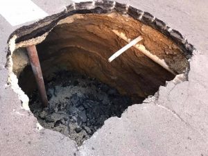 Voragine di 3 metri si apre in pieno centro a Chieti, Di Primio: individuate cause, subito lavori per ripristino (foto)