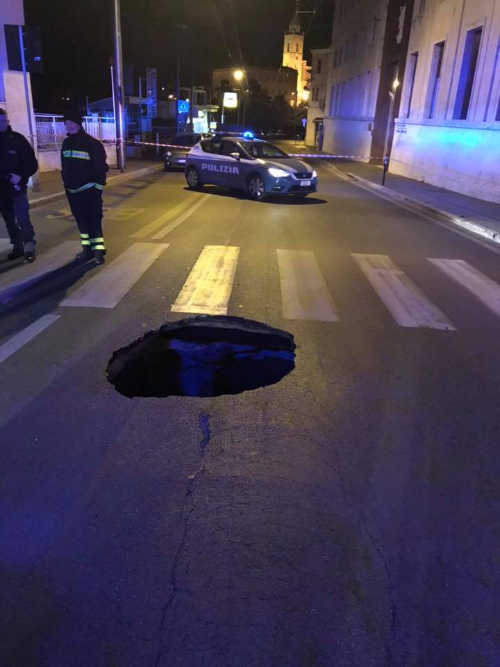 Chieti. Una voragine profonda circa tre metri si è aperta nella tarda serata di ieri in pieno centro a Chieti in via Asinio Herio. Solo la fortuna ha voluto che un’auto che transitava sulla strada in quel momento non subisse particolari danni. Fra i primi ad arrivare sul posto il sindaco di Chieti Umberto Di Primio.